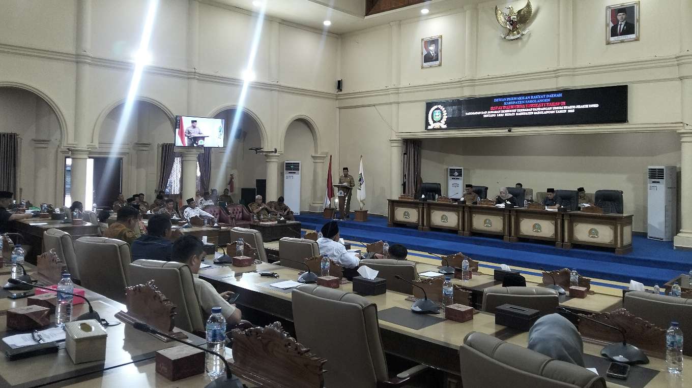 Rapat Paripurna dipimpin oleh Waka I DPRD Sarolangun Cik Marleni, SE didampingi Waka II DPRD Sarolangun Dedi Ifriyansah, SM dengan dihadiri 23 orang dari 30 orang anggota DPRD Sarolangun.