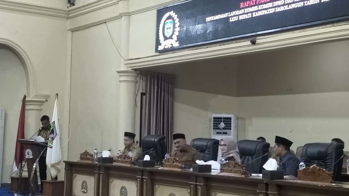 KABAR SAROLANGUN,- DPRD Kabupaten Sarolangun melaksanakan kegiatan Rapat Paripurna DPRD Sarolangun Tingkat II Tentang Penyampaian Laporan Komisi-Komisi DPRD dan Rekomendasi DPRD terhadap LKPJ Bupati Sarolangun Tahun Anggaran 2025, Selasa (14/04/2026) petang di gedung DPRD Sarolangun.