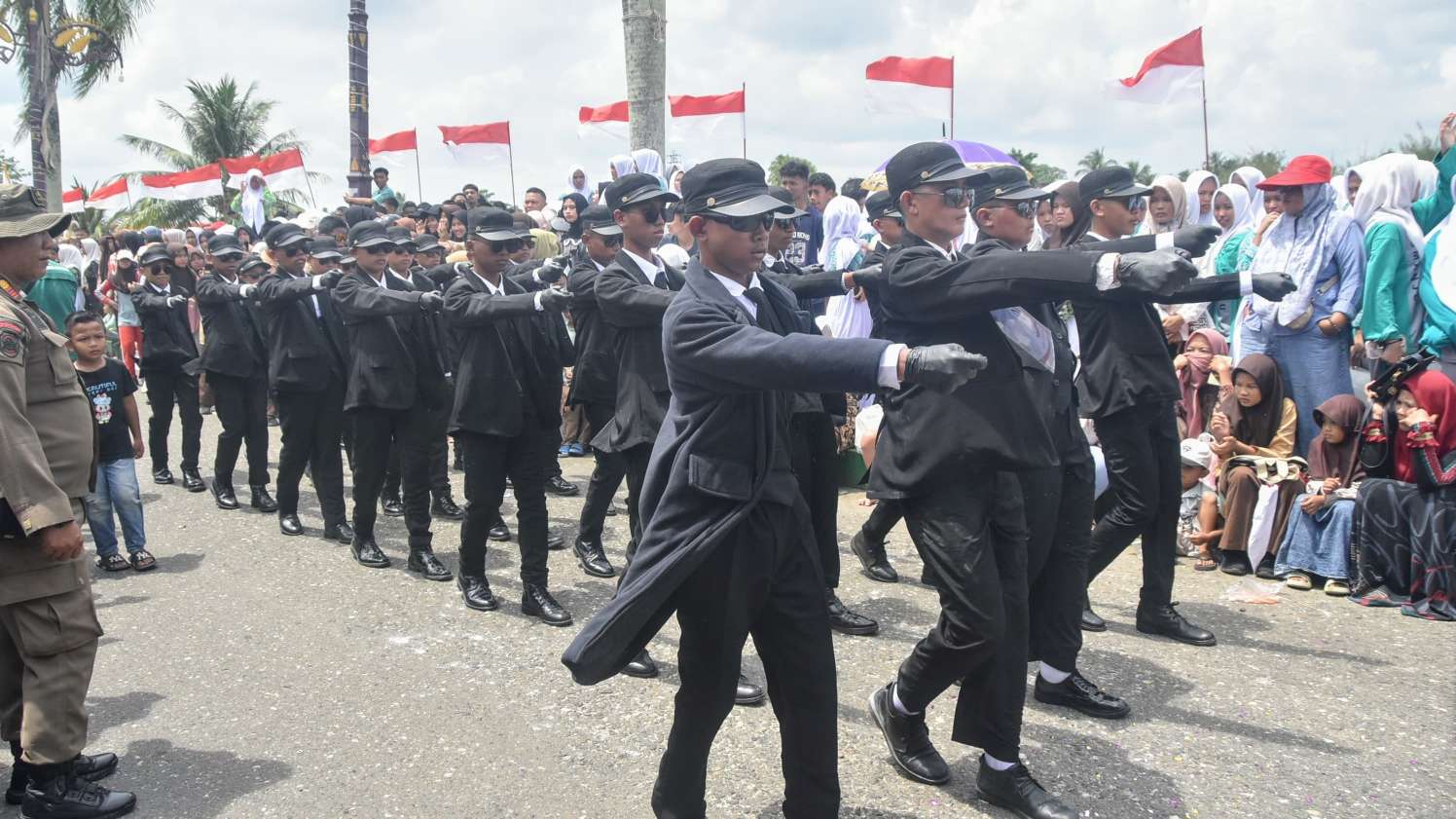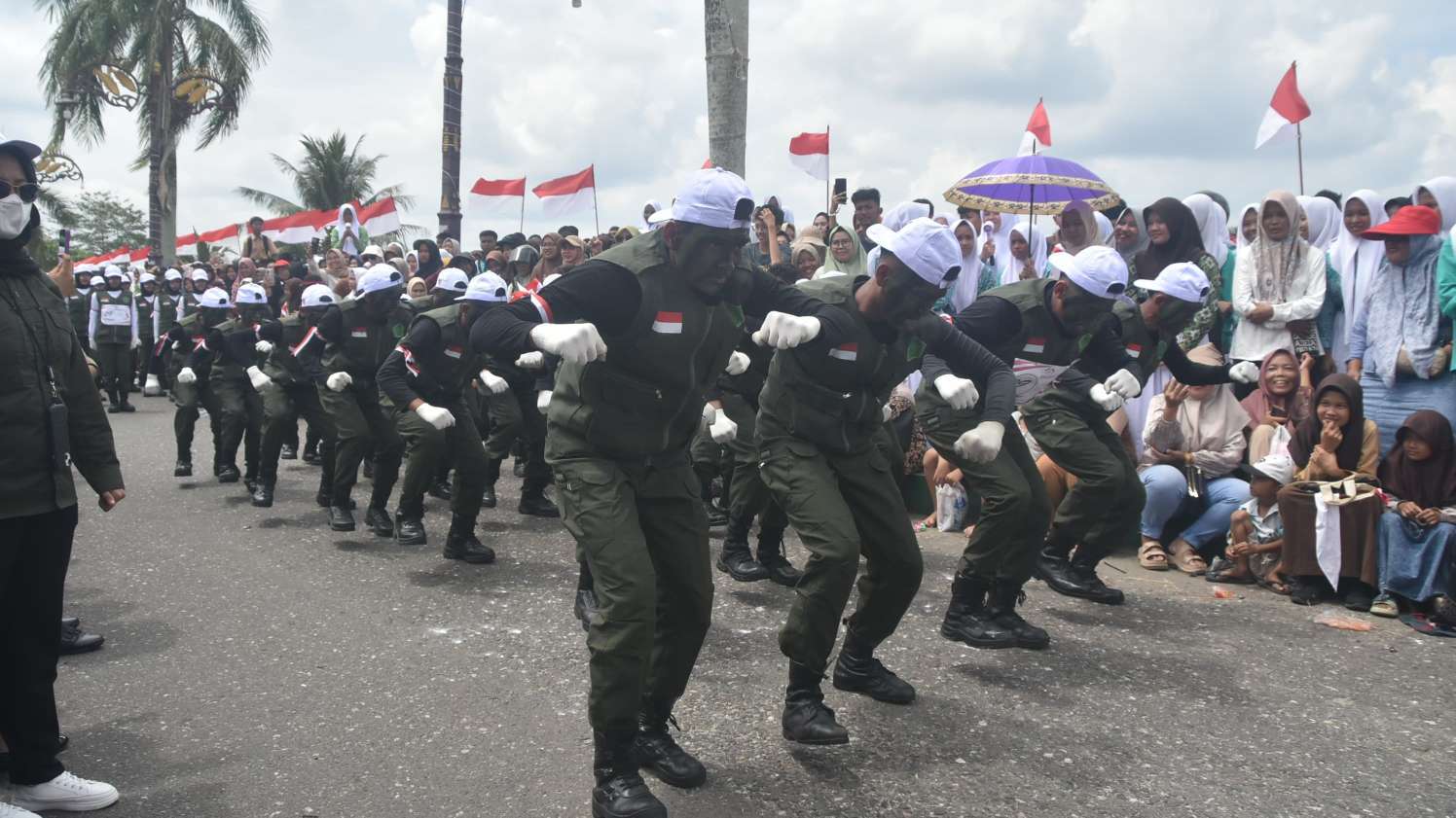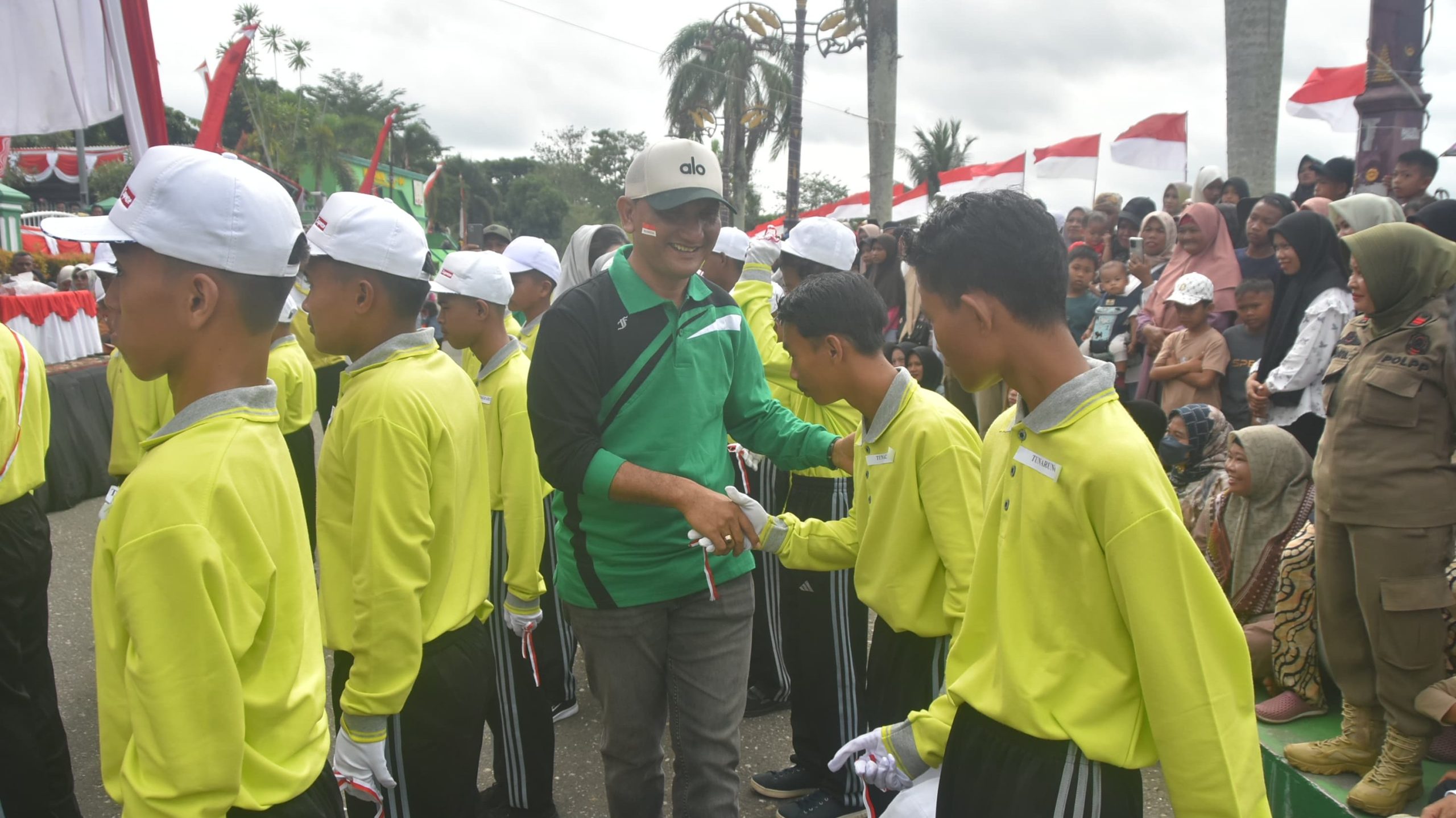 ” Alhamdulillah hari ini tandanya kita sebagai warga negara RI yang baik itu ikut merayakan, melaksanakan gerak jalan bersama seluruh OPD, pelajar, star jam 8 kurang tadi,” katanya.