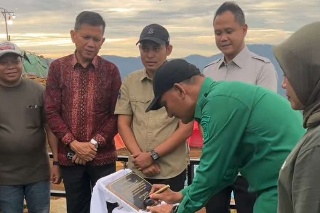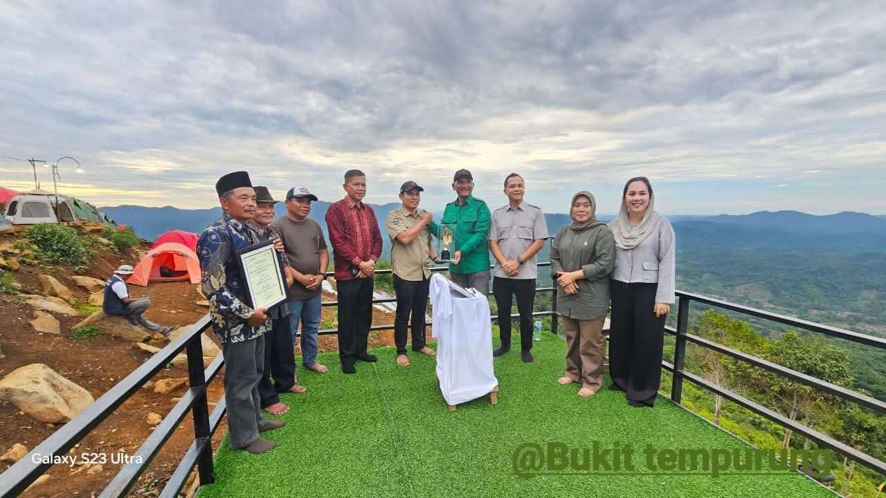 Di atas puncak bukit tempurung, Bupati Sarolangun H Hurmin tampak melakukan penandatangan prasasti peresmian destinasi objek wisata puncak bukit tempurung, yang berlangsung dengan penuh khidmat.