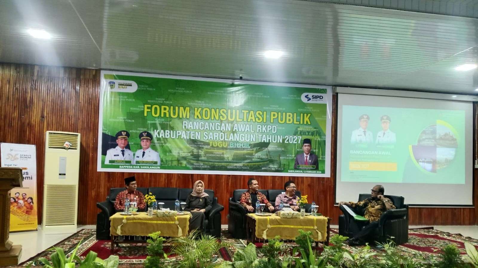 KABAR SAROLANGUN – Badan Perencanaan Pembangunan Daerah (Bappeda) Kabupaten Sarolangun menggelar kegiatan Forum Konsultasi Publik (FKP) Rancangan Awal (Ranwal) Rencana Kerja Pemerintah Sarolangun (RKPD) Kabupaten Sarolangun Tahun 2027, Kamis (12/02/2026) di Ruang Aula Kantor Bappeda.