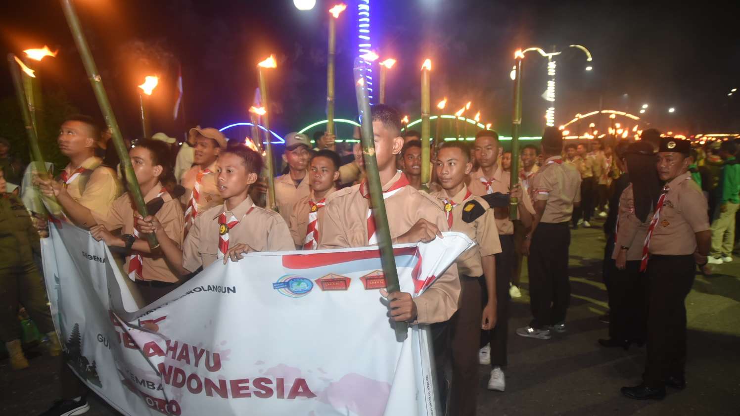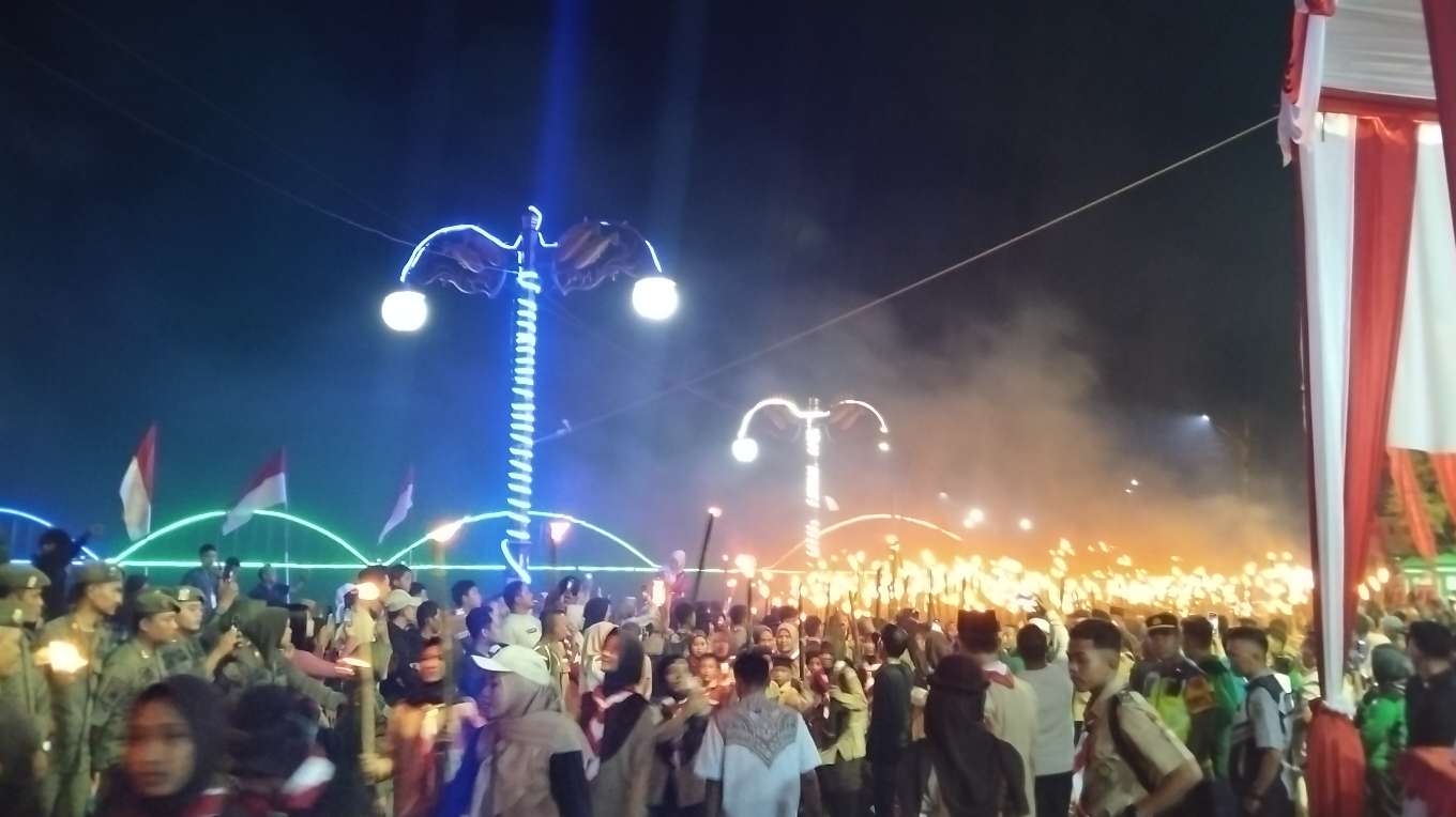 Kegiatan pawai obor yang diikuti ribuan anggota Pramuka kwarcab Pramuka Sarolangun