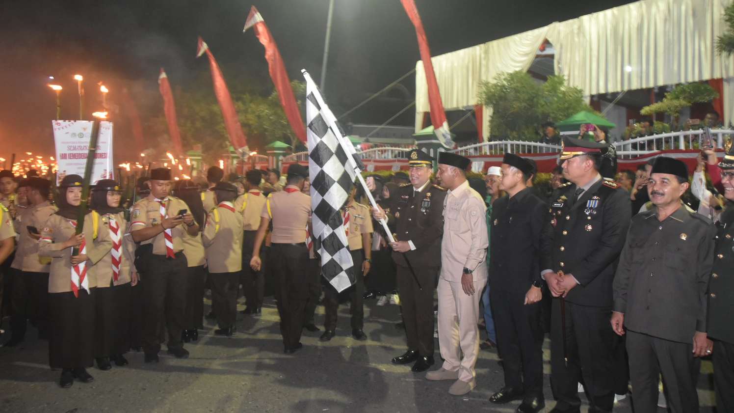 Berlangsung Khidmat, Bupati Sarolangun Hurmin Hadiri Pawai Obor Sambut Hari Kemerdekaan RI Ke-80 Tahun 2025