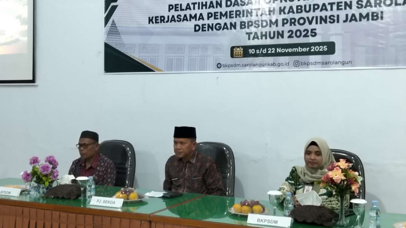 ” Kegiatan ini dilaksanakan sesuai dengan amanah UU Nomor 20 Tahun 2023 tentang ASN, Peraturan LAN, dan surat Kepala BPSDM Provinsi Jambi Nomor b/800.2/139 dari bpsdm/VIII/2025 tanggal 20 Agustus 2025 hal izin prinsip penyelenggaraan pelatihan dasar CPNS Kabupaten Sarolangun tahun 2025,” katanya.
