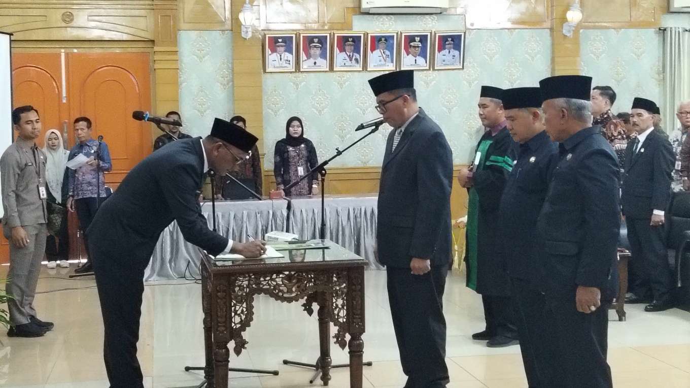 Bupati Sarolangun H Hurmin menandatangani berita acara pelantikan sekda Sarolangun yang baru