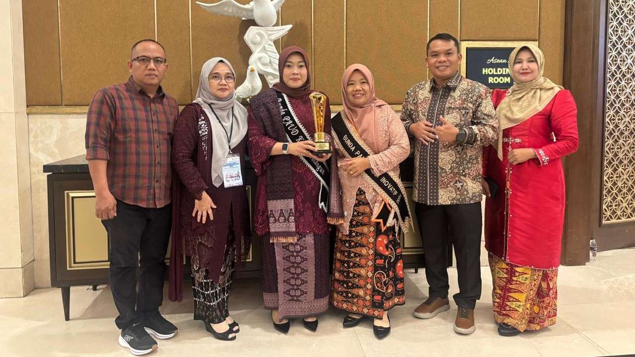 Bunda PAUD Desa Sungai Baung Yani Fitriyati saat menerima penghargaan juara 1 Apresiasi Bunda PAUD Tingkat Nasional kategori Bunda PAUD Desa Inovatif Se-Indonesia