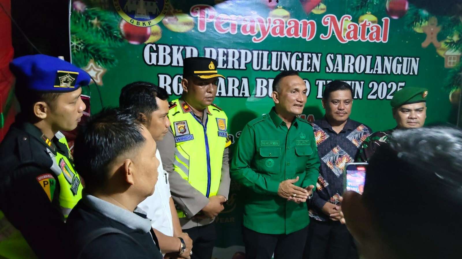 ” Kita sebagai pelayan masyarakat harus bisa memastikan keamanan dan kenyamanan masyarakat saat beribadah. Tak terkecuali bagi umat Kristiani yang mulai malam ini melaksanakan ibadah malam Natal dan merayakan Natal,” Kata Bupati Sarolangun Hurmin.