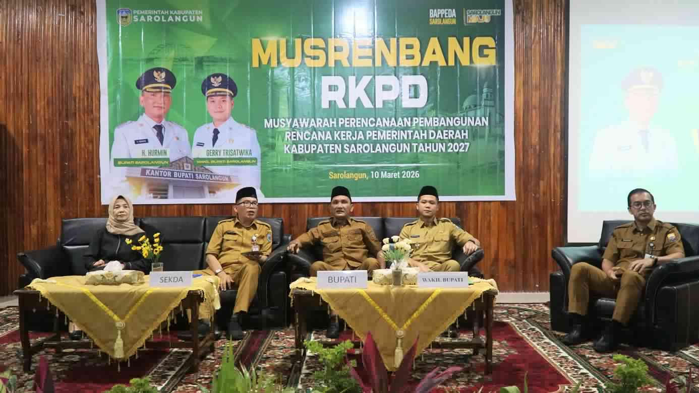 KABAR SAROLANGUN – Bupati Sarolangun H Hurmin menghadiri sekaligus membuka secara langsung kegiatan Musyawarah Perencanaan Pembangunan (Musrenbang) dalam rangka penyusunan Rencana Kerja Pemerintah Daerah (RKPDK) Kabupaten Sarolangun tahun 2027, Selasa (10/03/2026) di ruang Aula Bappeda Sarolangun.