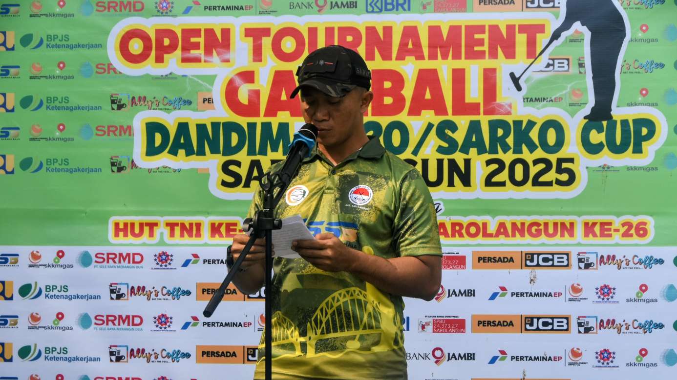 Dalam laporannya Ketua Panitia Pelaksana Thoriq mengatakan bahwa kegiatan turnamen gateball ini diselenggarakan dalam rangka menyambut hari ulang tahun TNI yang ke-80 dan hari ulang tahun Kabupaten Sarolangun yang ke-26 yang sama-sama jatuh pada bulan Oktober mendatang.