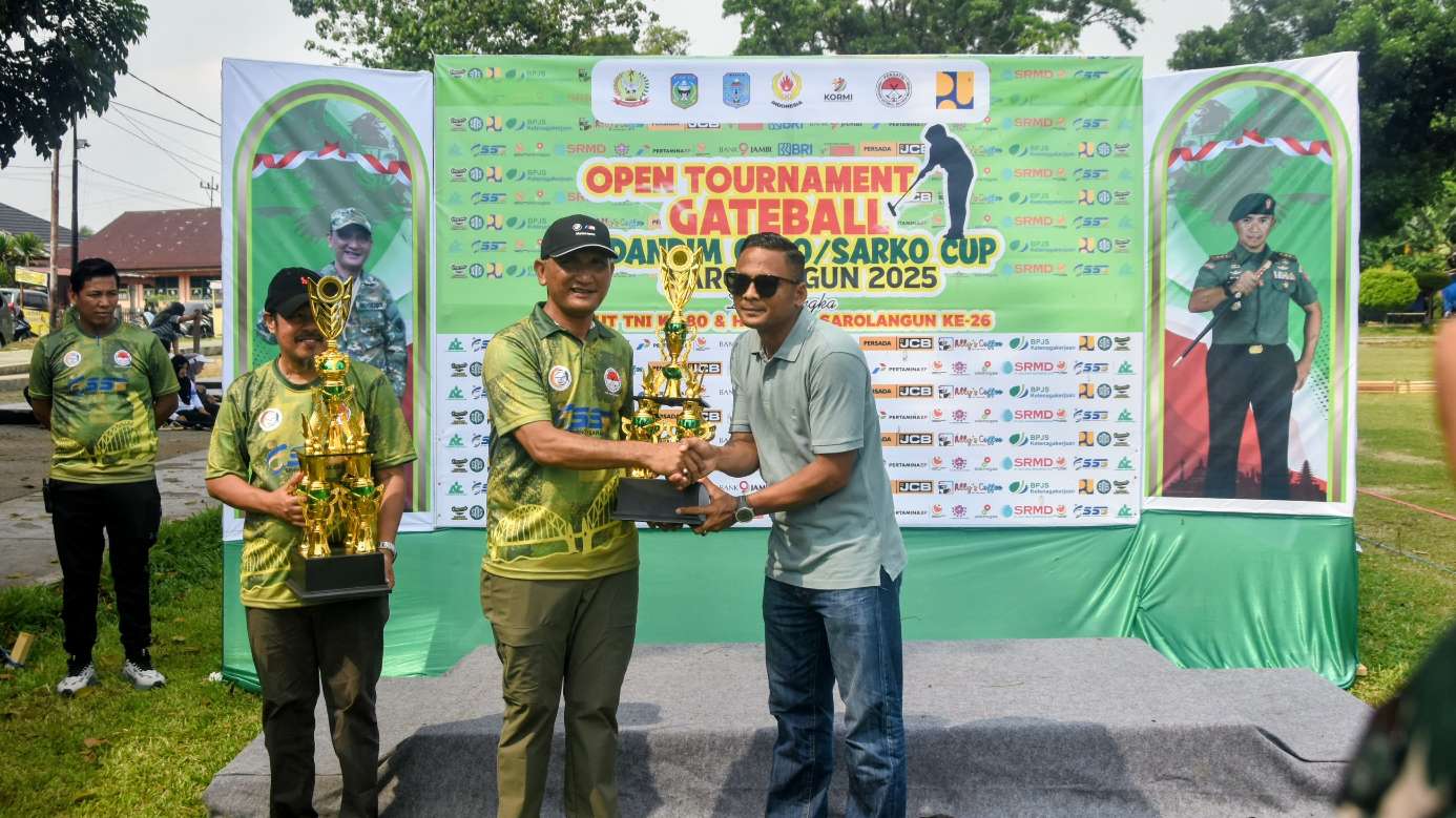 Dalam kegiatan tersebut, Bupati Sarolangun Hurmin bersama Dandim 0420/Sarko Letkol Inf Yakhya Wisnu Arianto menyerahkan piala kepada Panitia Pelaksana dalam open turnamen tersebut, yang diakhiri dengan Poto bersama serta pemukulan bola gateball sebagai tandai dimulainya open turnamen.