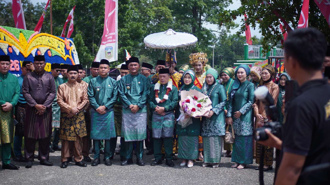 KABAR SAROLANGUN – Bupati Sarolangun H Hurmin beserta istri Ny Hj Risha Fitria mendampingi Gubernur Jambi Dr H Al Haris, S.Sos, MH beserta istri Ny Hj Hesti Hadis menghadiri Rapat Paripurna HUT Ke-26 Kabupaten Sarolangun tahun 2025, Minggu (12/10/2025).