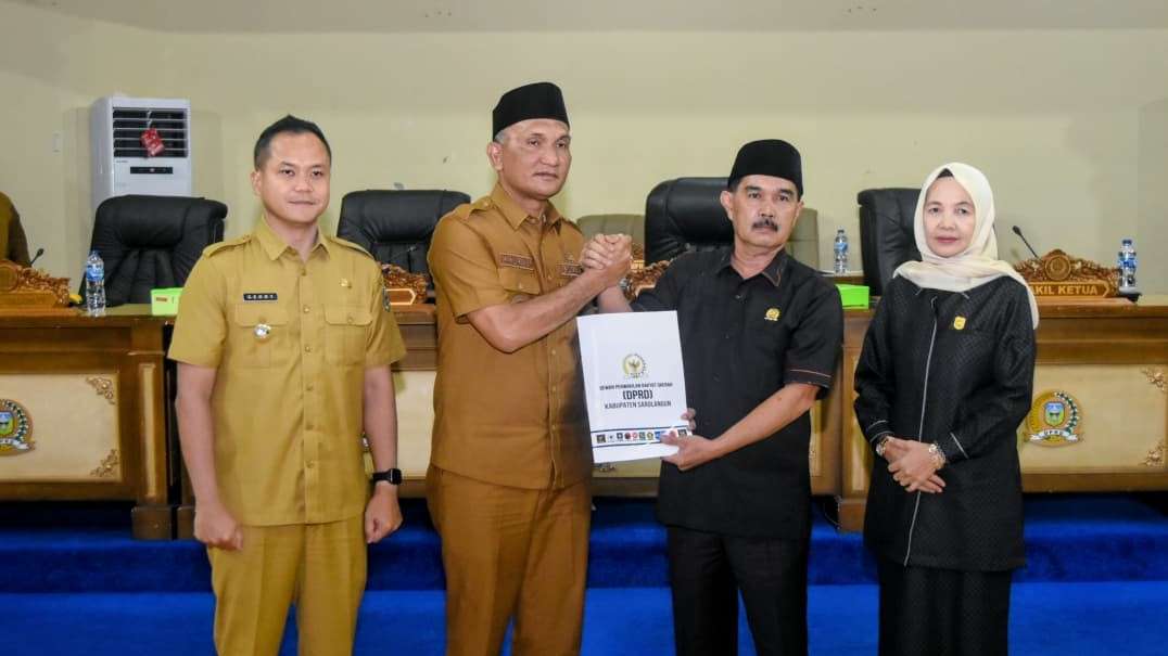 Bupati Sarolangun Hurmin menerima dokumen pandangan umum Fraksi-fraksi DPRD Sarolangun yang diserahkan oleh Ketua DPRD Sarolangun Ahmad Jani
