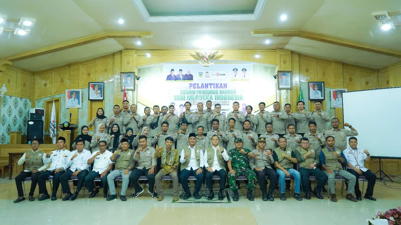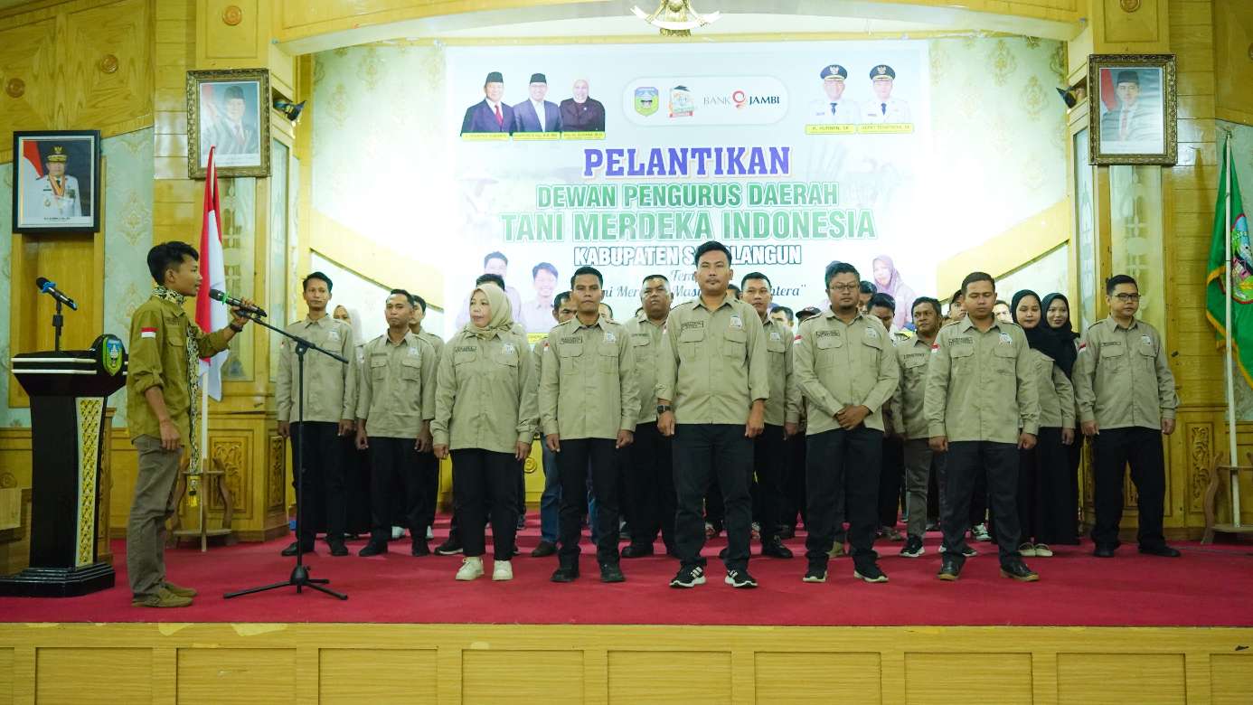 KABAR SAROLANGUN – Bupati Sarolangun H Hurmin bersama Wakil Bupati Sarolangun Gerry Trisatwika, SE menghadiri langsung kegiatan pelantikan Dewan Pengurus Daerah (DPD) Tani Merdeka Indonesia Kabupaten Sarolangun Priode 2025-2030, Rabu (29/10/2025) di Ruang Pola Kantor Bupati Sarolangun.