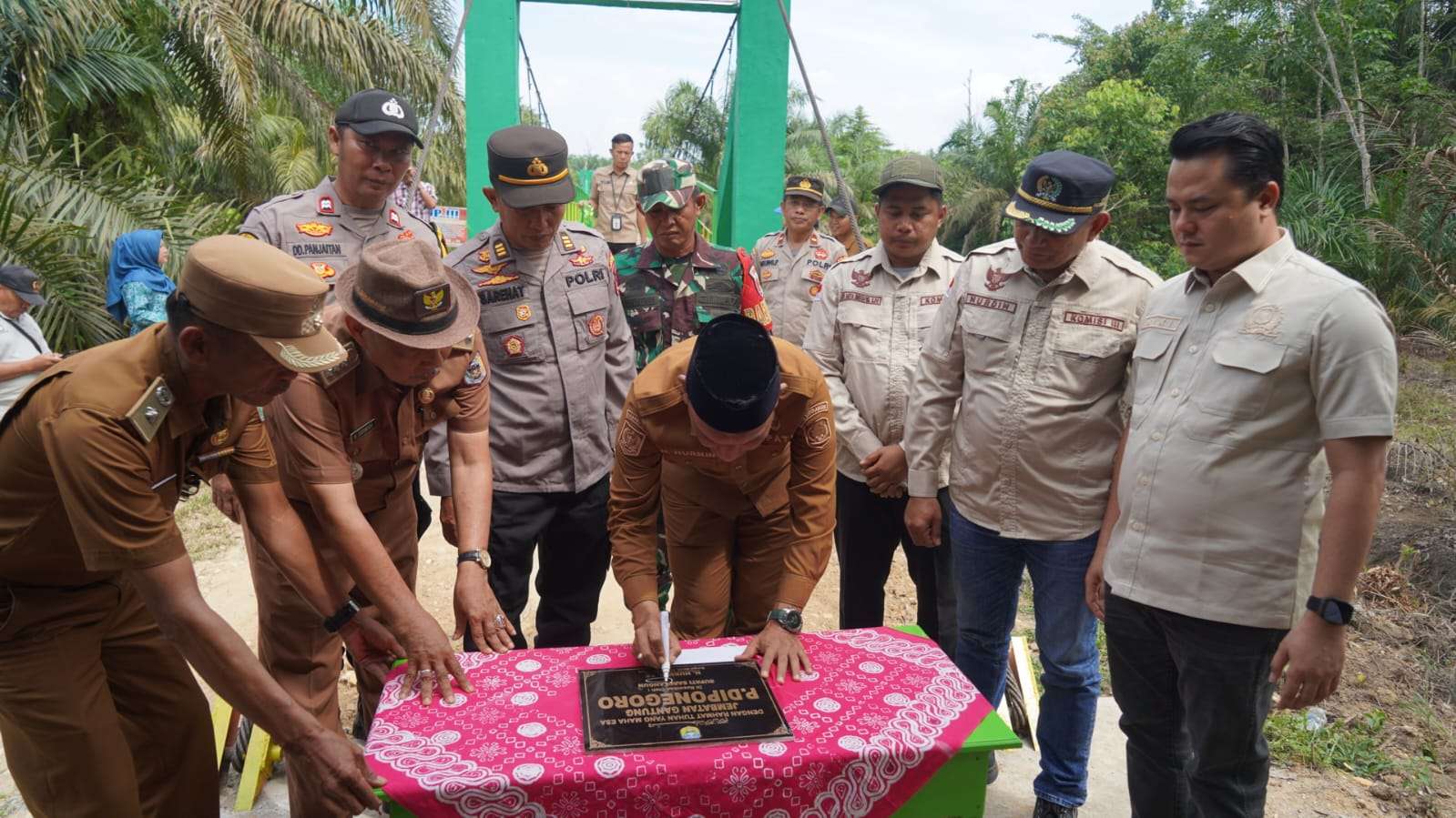 KABAR SAROLANGUN – Bupati Sarolangun H Hurmin melakukan panen raya perdana jagung sekaligus peresmian Jembatan Gantung (Jamtung) Pangeran Diponegoro, Desa Sungai Merah, Kecamatan Pelawan, Selasa (11/11/2025).