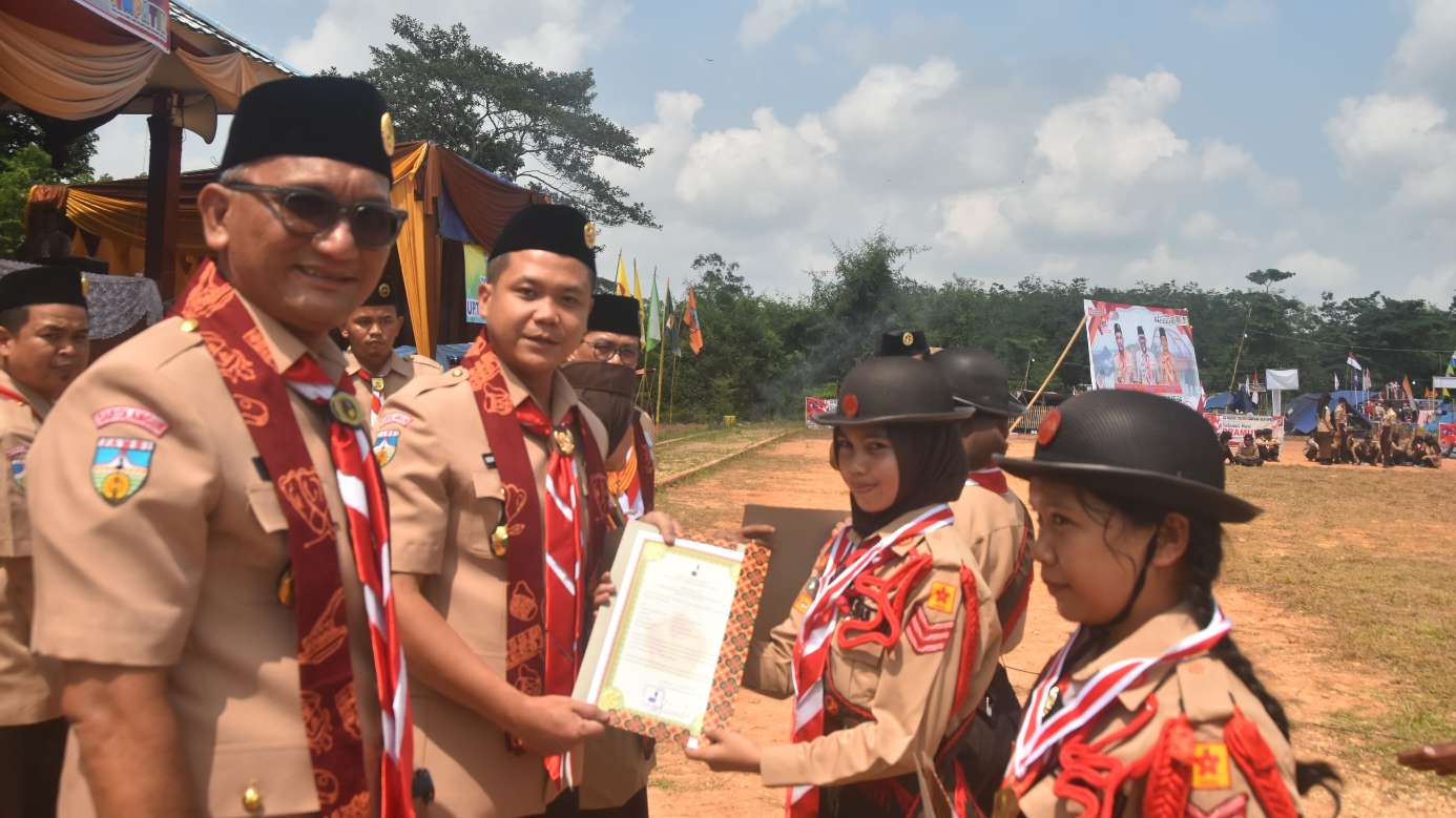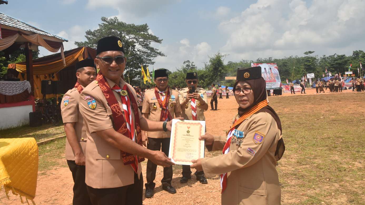 Dalam kegiatan tersebut, Bupati Sarolangun Hurmin dan Wakil Bupati Sarolangun Gerry Trisatwika menyematkan tanda penghargaan Satya lencana dan piagam penghargaan bagi anggota Pramuka yang menerima penghargaan.