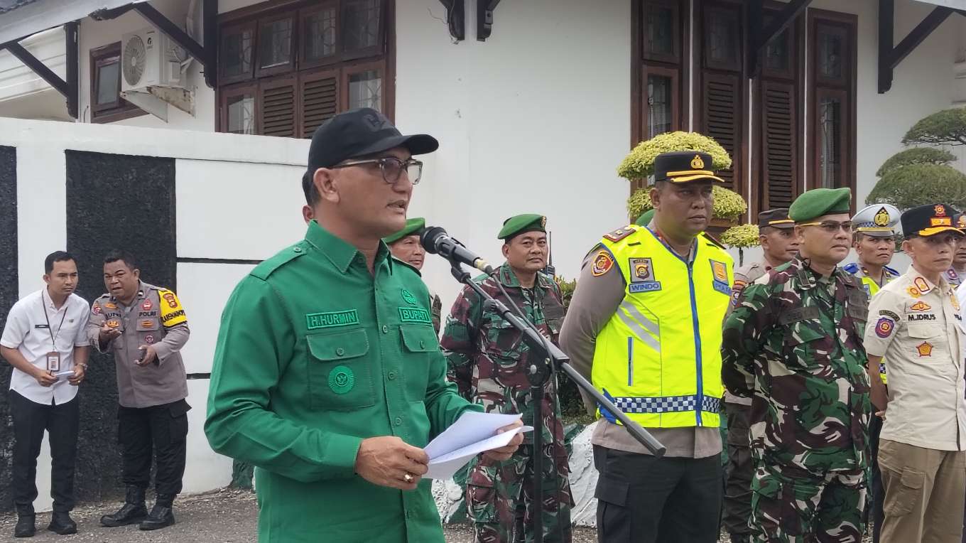 Bupati Sarolangun Hurmin saat memimpin apel siaga malam perayaan natal tahun 2025