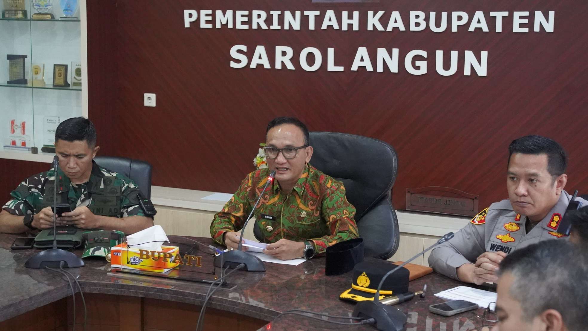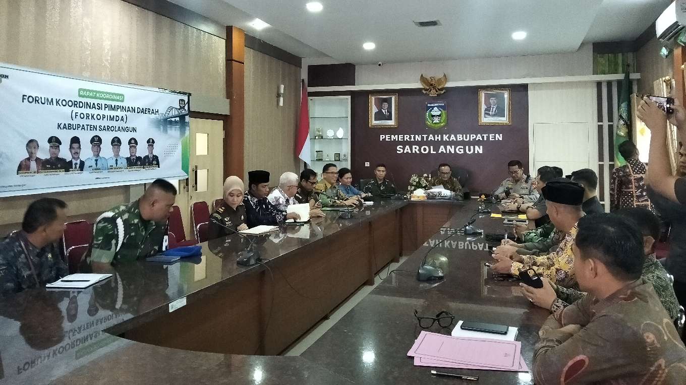 KABAR SAROLANGUN – Bupati Sarolangun H Hurmin memimpin kegiatan rapat Forum Koordinasi Pimpinan Daerah (Forkopimda) Kabupaten Sarolangun dalam rangka membahas isu-isu aktual daerah Kabupaten Sarolangun, Kamis (12/03/2026) di ruang Pola Utama Kantor Bupati Sarolangun.