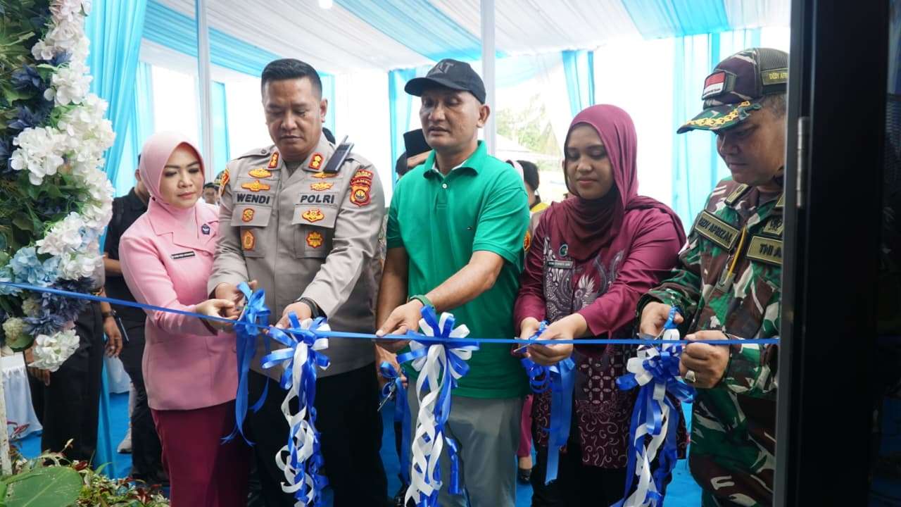 Bupati Sarolangun Hurmin, Kapolres Sarolangun AKBP Wendi Oktariansyah, Pabung Mayor CHK Dedy Afrizal, dan jajaran saat memotong pita peresmian SPPG Pelawan Polres Sarolangun