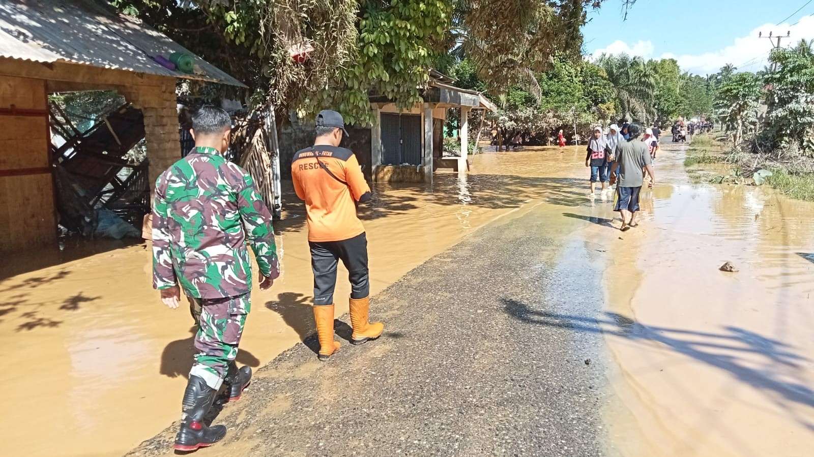Di lokasi, Dandim bersama rombongan terlihat menyusuri area terdampak banjir untuk melihat langsung kondisi warga serta memastikan langkah-langkah penanganan berjalan dengan baik. Selain itu, kehadiran aparat TNI ini juga bertujuan memberikan dukungan moril kepada masyarakat yang terdampak.