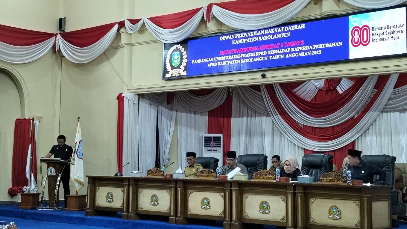 Juru Bicara Fraksi PKS Feby Bestian mengatakan bahwa Pemerintah Kabupaten Sarolangun telah menyampaikan KPK perubahan APBD Kabupaten Sarolangun Tahun Anggaran 2025 lewat nota pengantar yang disampaikan oleh saudara wakil bupati dari Tri Satwika se pada hari Selasa tanggal 5 agustus 2025.