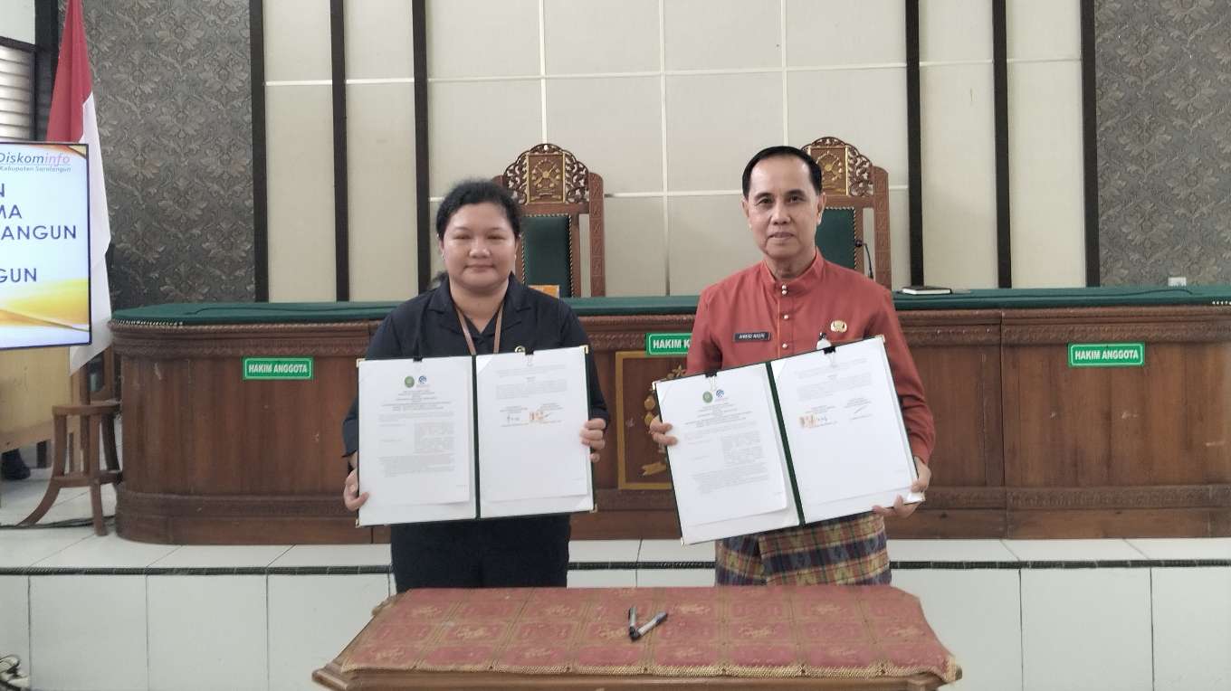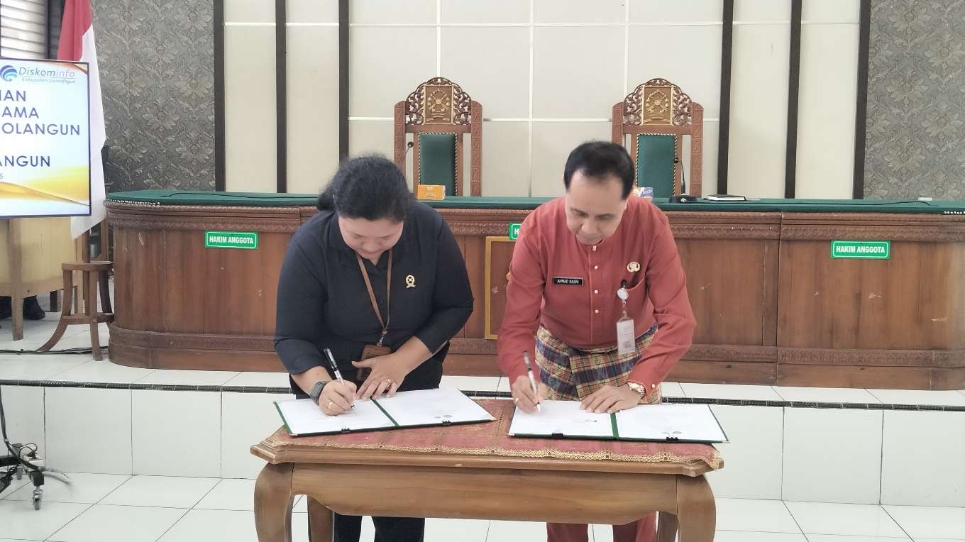 Penandatanganan tersebut dilakukan oleh Kadis Kominfo Sarolangun H Ahmad Nasri, SH, MH, bersama Ketua PN Sarolangun Novarina Manurung, SH, MH yang berlangsung dengan lancar.
