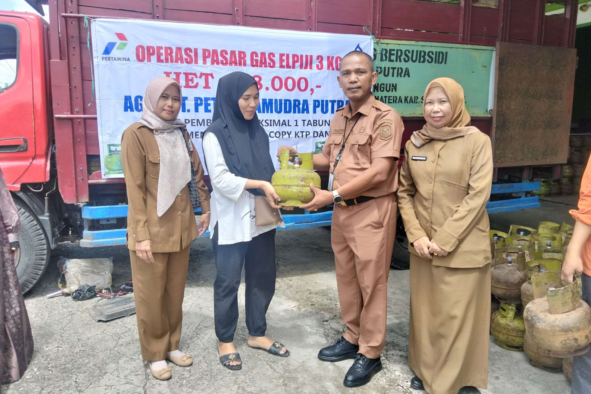 Hadir dalam kegiatan tersebut, Plt Kadis UMKM, Koperasi, Perindustrian dan Perdagangan Bustra Desman , SE, MM, Kabid Perdagangan Mahmubah, Lurah Suka Sari Findra Utama, Perwakilan PT Petro Samudera Putra, Pemilik pangkalan Syarip Kamarudin, serta Jajaran Dinas Koperindag.