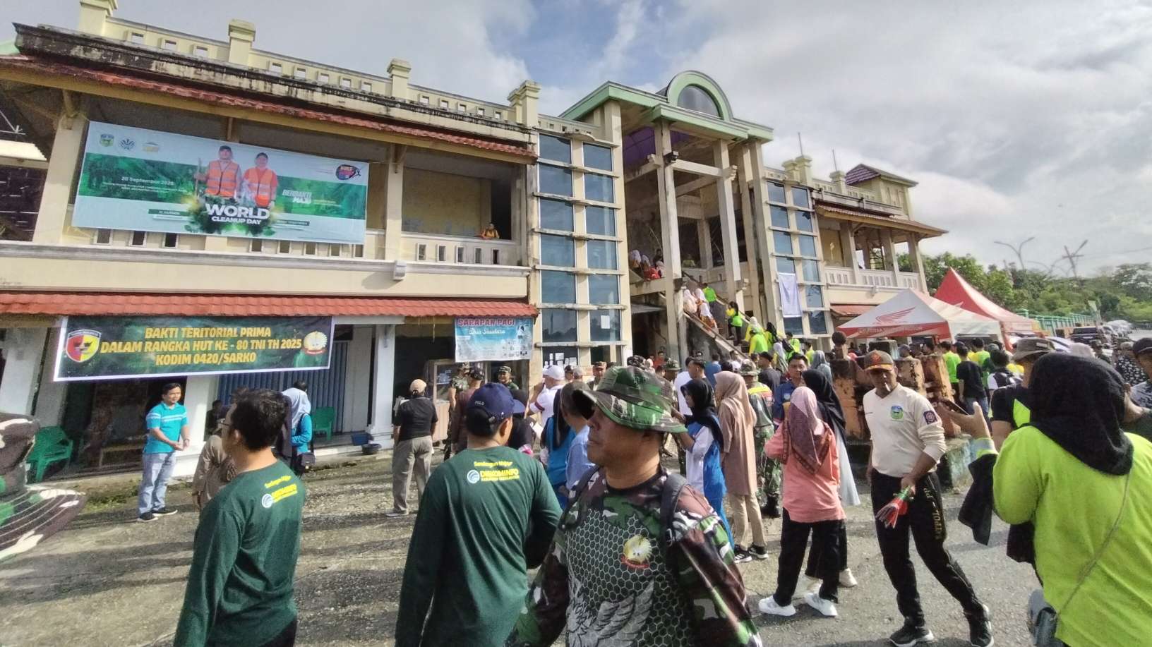 KABAR SAROLANGUN -Dalam rangka mendukung pelaksanaan Word Cleanup Day Indonesia Tahun 2025, Pemerintah Kabupaten Sarolangun menggelar kegiatan gotong royong pembersihan gedung pasar bawah, yang juga sekaligus dalam momentum HUT TNI Ke-80 Tahun 2025, Jumat (19/09/2025).