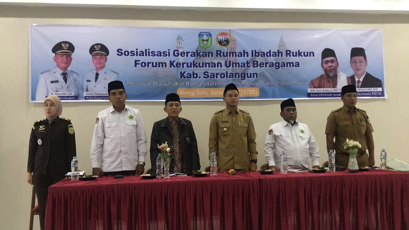 KABAR SAROLANGUN – Forum Kerukunan Umat Beragama (FKUB) Kabupaten Sarolangun menggelar kegiatan sosialisasi Gerakan Rumah Ibadah Rukun Forum Kerukunan Umat Beragama (FKUB) Kabupaten Sarolangun Tahun 2025, Selasa (23/12/2025) di ruang Aula Resto Wong Solo, Kelurahan Sarkam, Kecamatan Sarolangun.