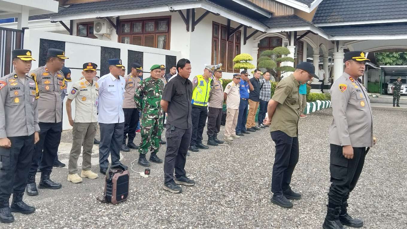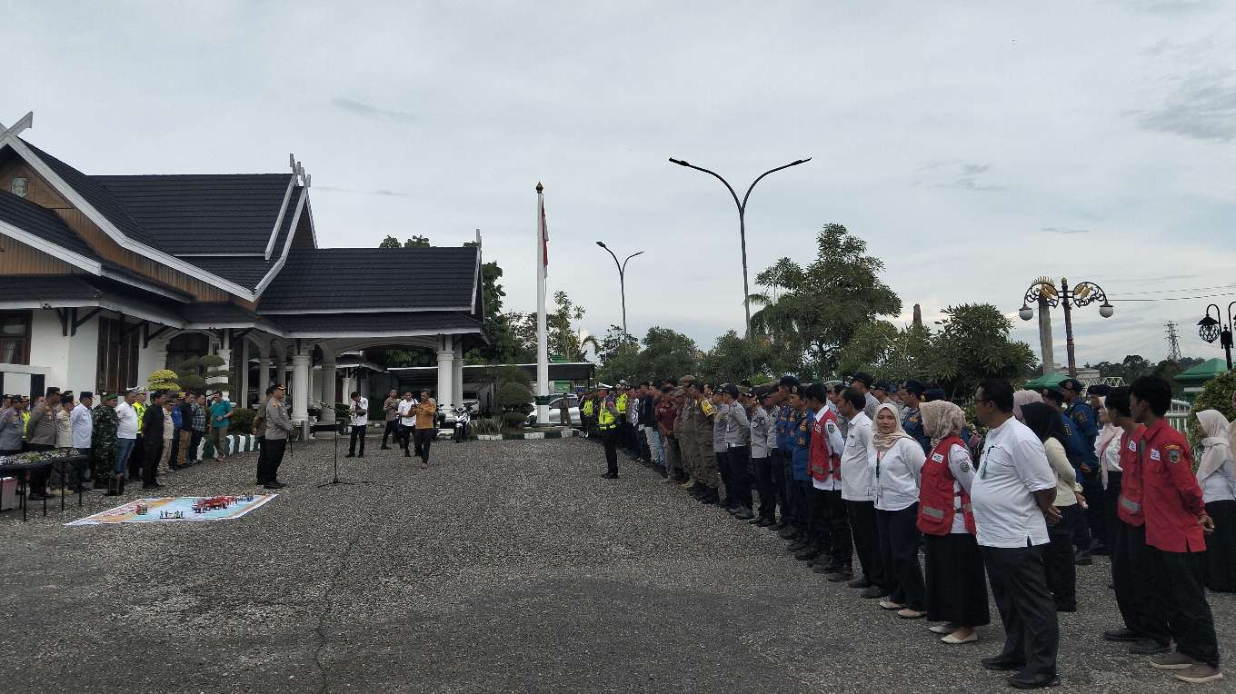 Ratusan personil gabungan terdiri dari TNI, Polri, Satpol PP, Dishub, Damkar, Dinkes, PMI mengikuti apel gabungan, Rabu (31/12/2025) di Halaman Rumah Dinas Bupati Sarolangun.