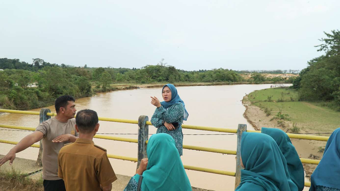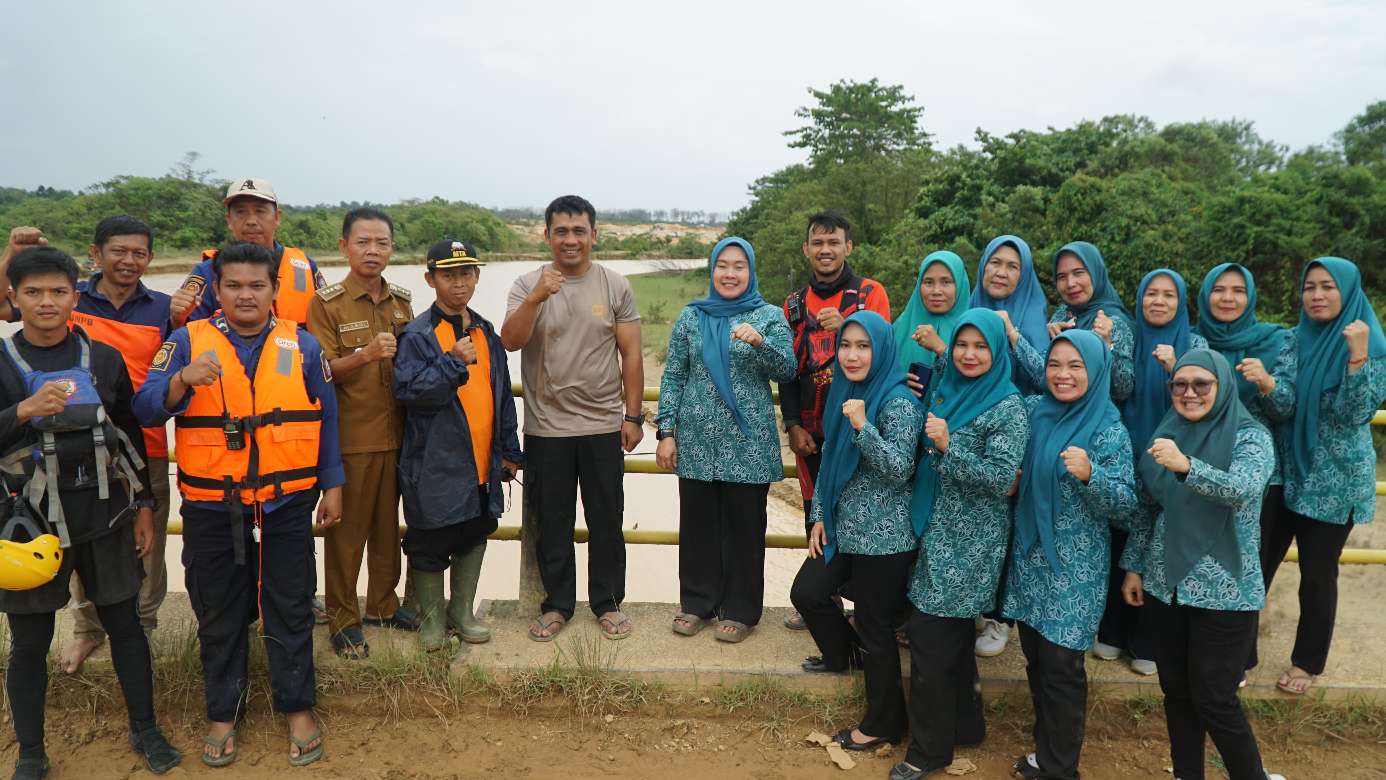 KABAR SAROLANGUN – Ketua TP PKK Sarolangun Ny Hj Risha Fitria Hurmin serta rombongan turun langsung meninjau proses pencarian satu orang korban yang tenggelam di Sungai Batang Limun, Desa Moenti, Kecamatan Limun, Selasa (21/04/2026) di lokasi Dam Kutur.