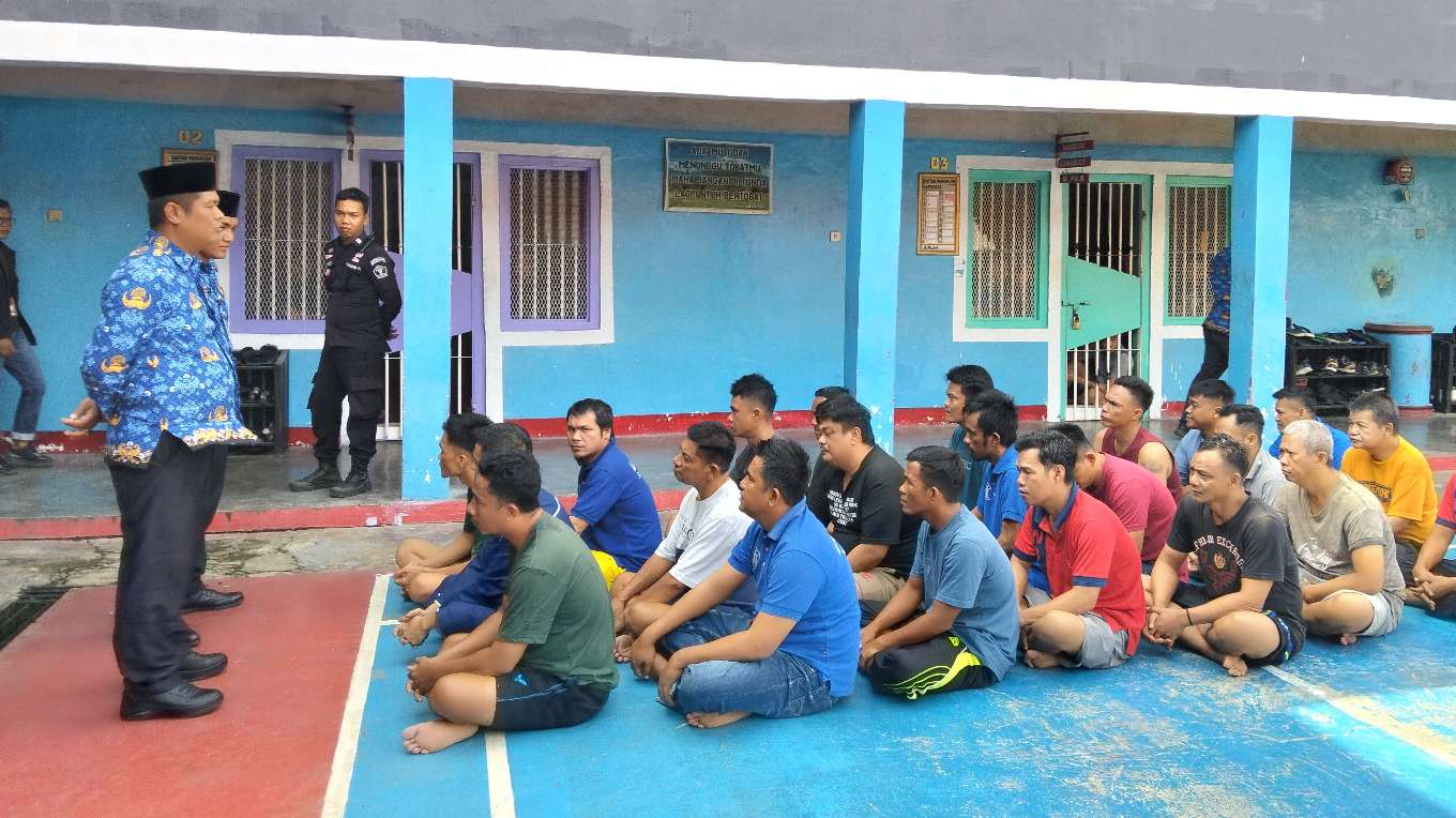 Petugas lapas Sarolangun saat memberikan pembinaan warga binaan
