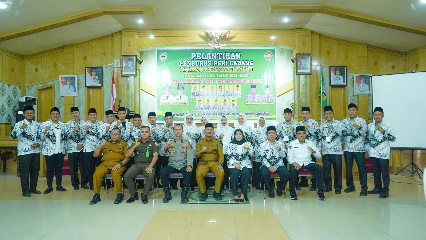 KABAR SAROLANGUN – Pelantikan Pengurus PGRI Cabang Se-kabupaten Sarolangun Masa Bakti XXIII Tahun 2025-2030 dan Ketua Cabang PGRI se-Kabupaten Sarolangun, Senin (20/10/2025) di ruang Pola Kantor Bupati Sarolangun berlangsung dengan sukses.