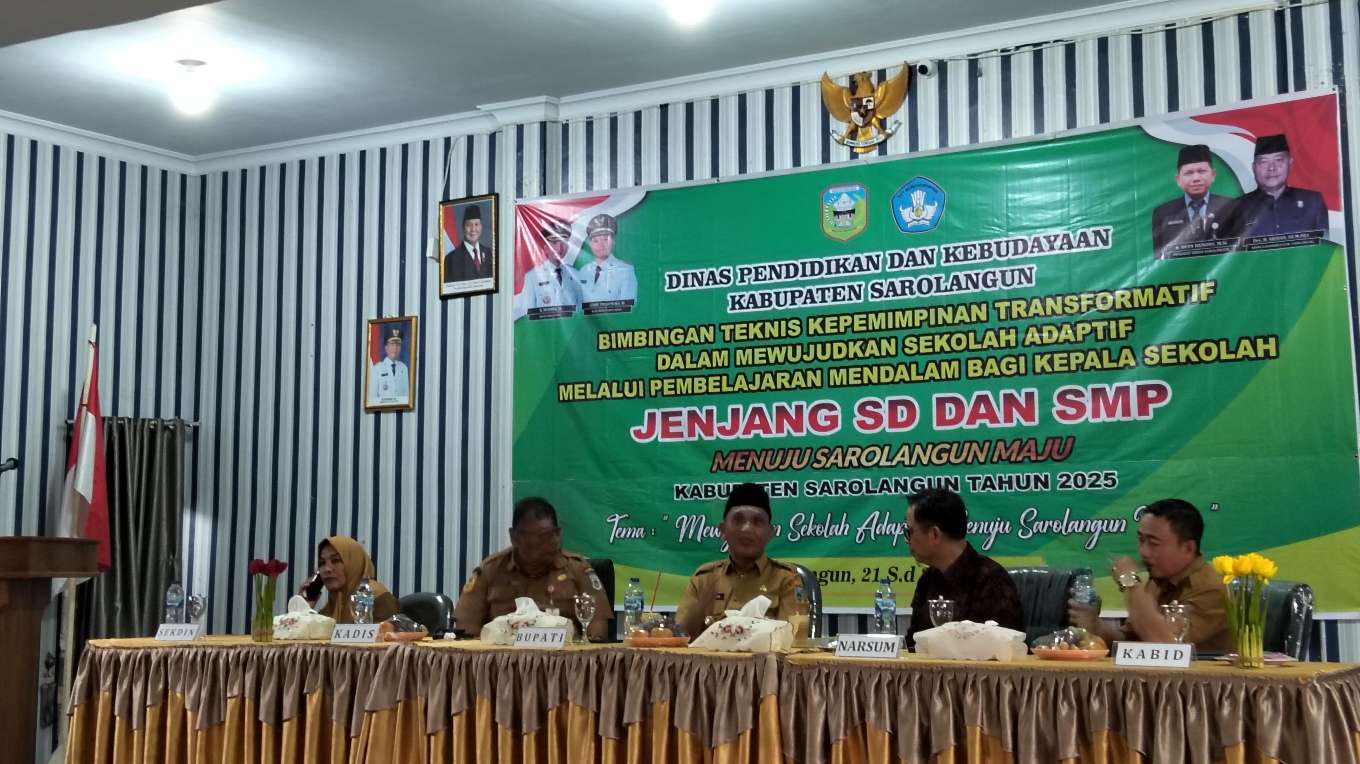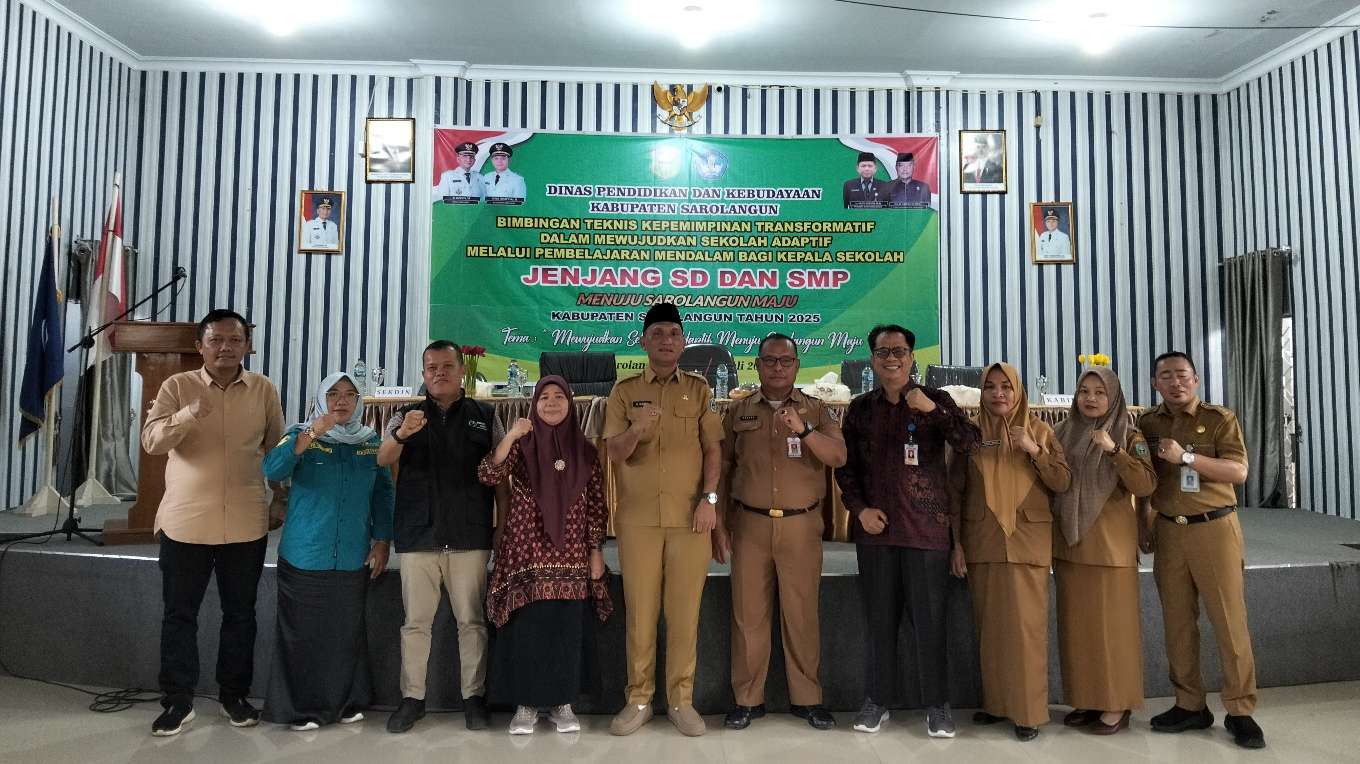 KABAR SAROLANGUN – Dinas Pendidikan dan Kebudayaan (Disdikbud) Kabupaten Sarolangun menggelar kegiatan Bimbingan Tekhnis Transformasi Kepemimpinan melalui pembelajaran mendalam bagi Kepala sekolah di jenjang SD dan SMP di lingkungan Pemerintah Kabupaten Sarolangun, Selasa (22/07/2025) di ruang Aula Disdikbud Sarolangun.