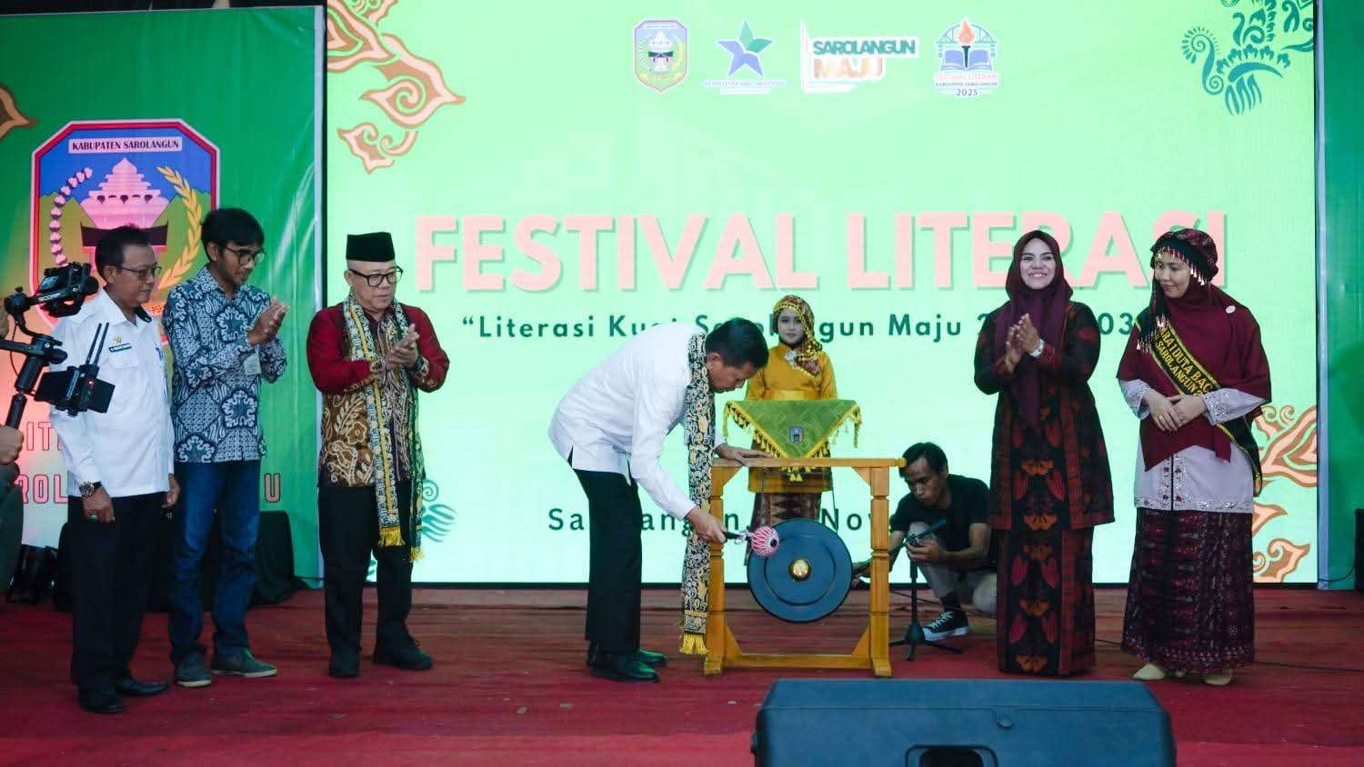 ” Dengan mengucapkan Bismillahirrahmanirrahim kegiatan Festival literasi Kabupaten Sarolangun Tahun 2025 secara resmi saya nyatakan dibuka,” katanya.