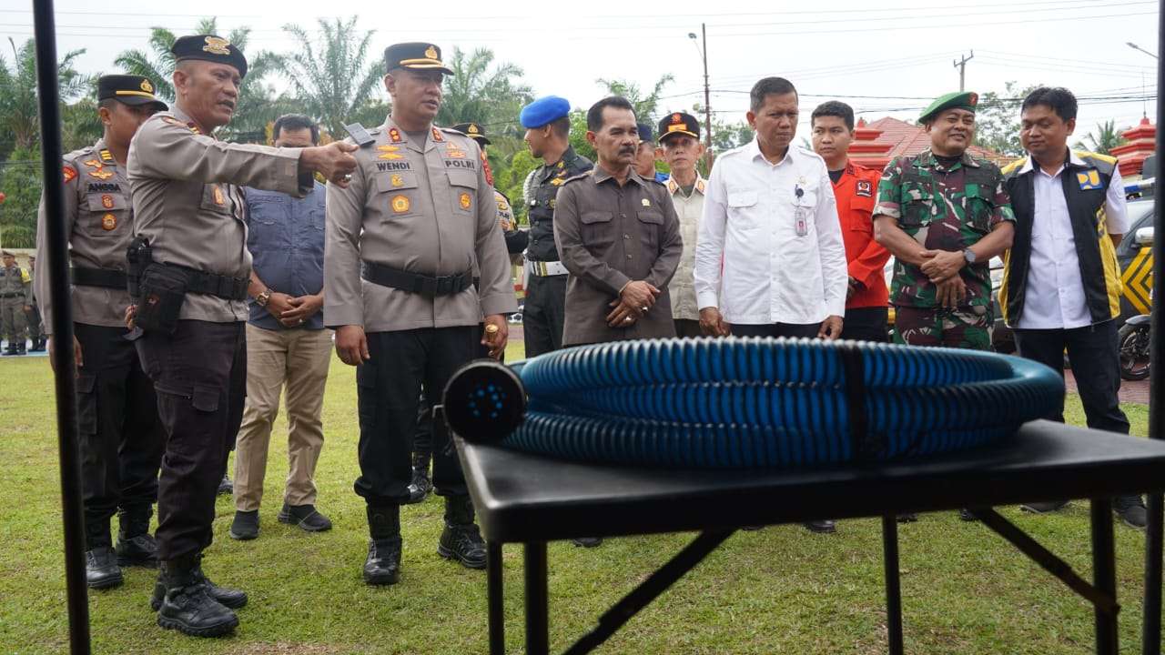 Dalam kesempatan tersebut, Kapolres Sarolangun AKBP Wendi Oktariansyah, PJ Sekda Sarolangun Dedy Hendry beserta Forkopimda melakukan pemeriksaan pasukan dan pemeriksaan kesiapan peralatan penanggulangan bencana.