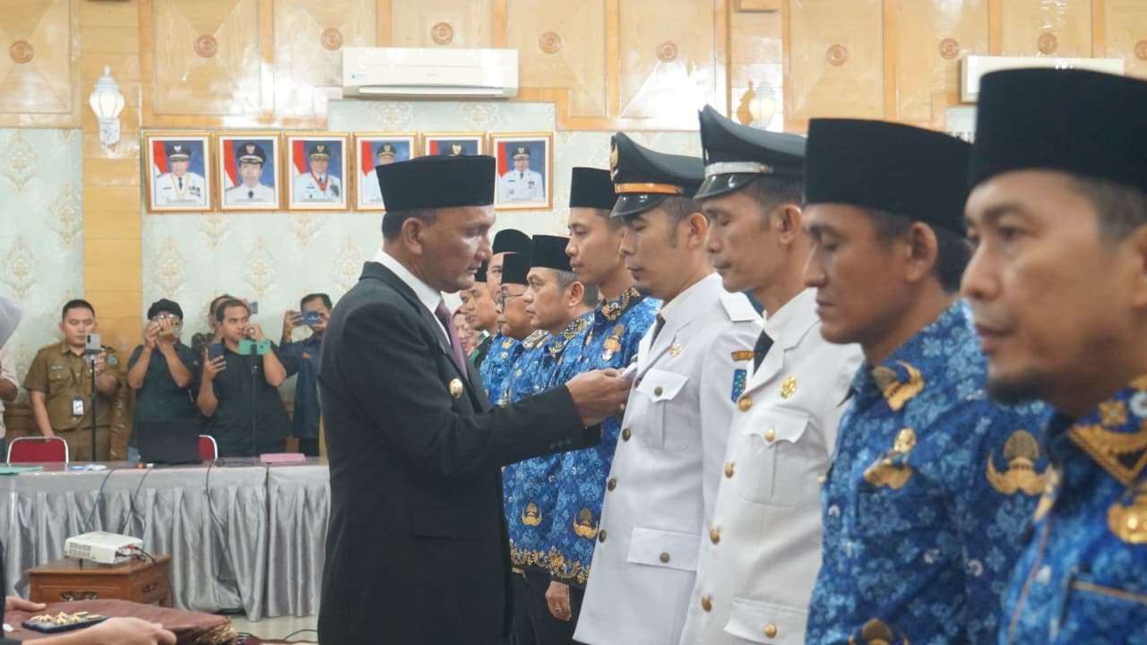 Bupati Sarolangun Hurmin menyematkan tanda jabatan