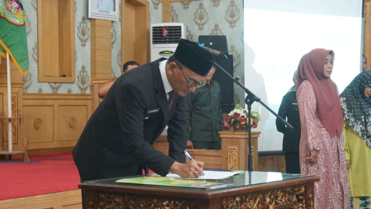 Bupati Sarolangun Hurmin menandatangani berita acara