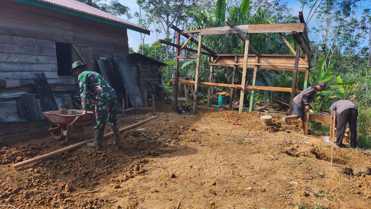Serma Topan bersama Serda Bopi menjadi bagian dari tim yang aktif di lapangan. Keduanya tampak bersemangat dan terjun langsung dalam proses pembangunan, mulai dari tahap awal hingga pengerjaan lanjutan.