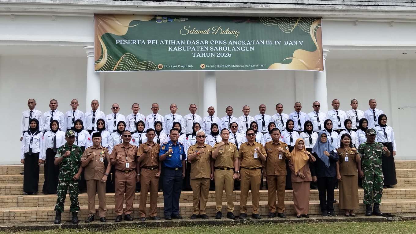 KABAR SAROLANGUN – Wakil Bupati Sarolangun Gerry Trisatwika, SE membuka secara langsung kegiatan Pelatihan Dasar (Latsar) Calon Pegawai Negeri Sipil (CPNS) Golongan III Formasi Umum angkatan III, IV dan V kerjasama Pemerintah Kabupaten Sarolangun dengan Badan Pengembang Sumber Daya Manusia (BPSDM) Provinsi Jambi Tahun 2026, Senin (06/04/2026) di gedung Diklat BKPSDM Sarolangun.