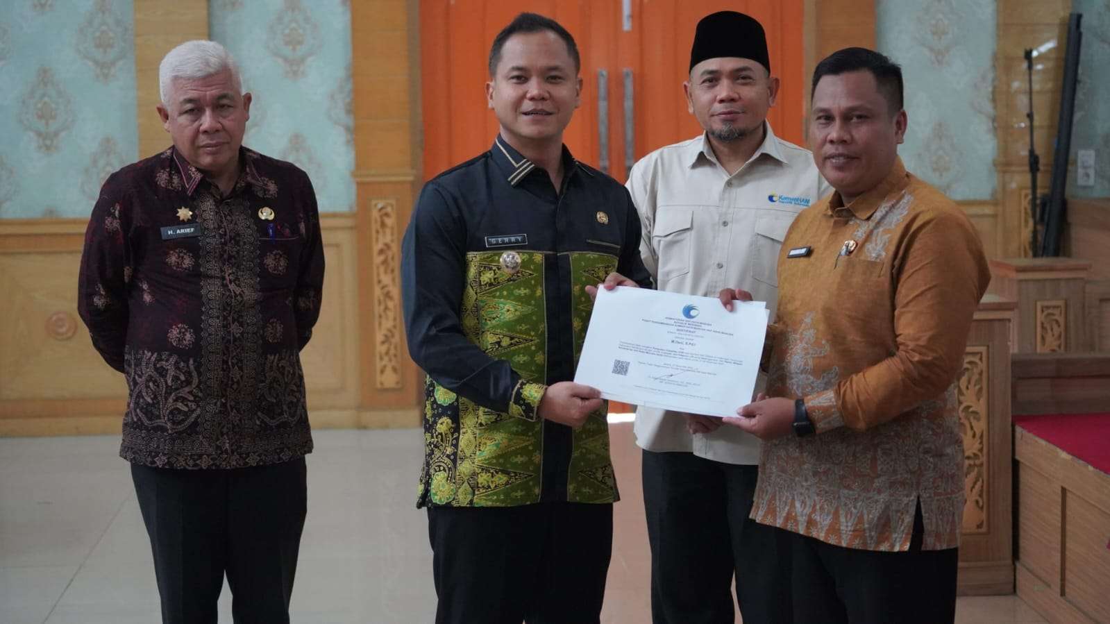 Wakil Bupati Sarolangun Gerry Trisatwika menyerahkan sertifikat kepada salah satu peserta penguatan kapasitas HAM bagi ASN secara simbolis