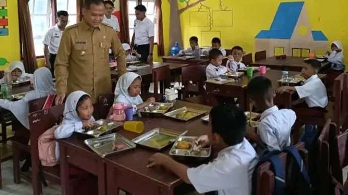 Wakil Bupati Sarolangun Gerry Trisatwika saat melihat penyaluran MBG bagi siswa sekolah