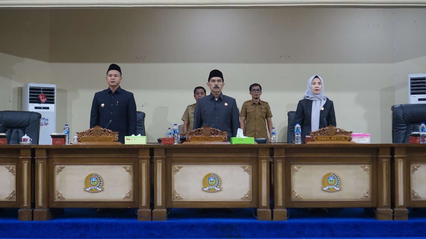 KABAR SAROLANGUN – Wakil Bupati Sarolangun Gerry Trisatwika, SE menghadiri rapat paripurna tingkat 2 DPRD Sarolangun dalam agenda penyampaian Laporan Badan Anggaran (Banggar), Pengambilan Keputusan dan Penandatanganan Kesepakatan Bersama Terhadap Rancangan Kebijakan Umum Anggaran (R-KUA) dan Prioritas Plafon Anggaran Sementara (PPAS) Anggaran Pendapatan dan Belanja Daerah (APBD) Kabupaten Sarolangun Tahun Anggaran 2026, Selasa (04/11/2024) petang di Gedung DPRD Sarolangun.
