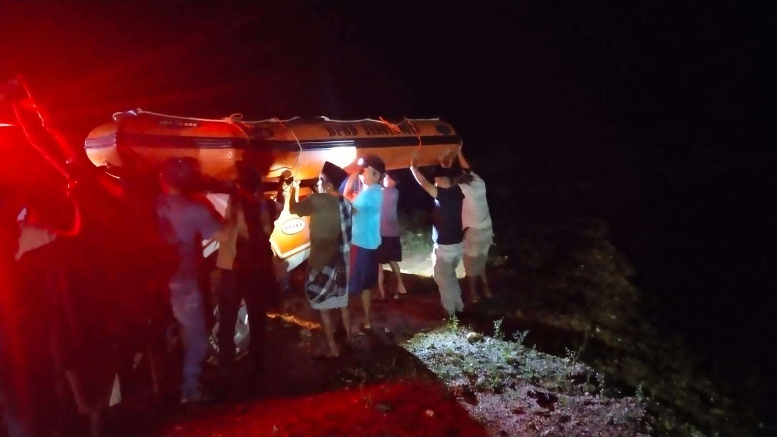 Mengetahui kejadian tersebut, Kapolsek bersama anggota dan warga sekitar langsung melakukan upaya penyelamatan. Dengan menggunakan perahu milik warga, petugas berhasil mengevakuasi empat orang korban dari aliran sungai, sementara dua korban lainnya ditemukan dalam kondisi selamat di seberang sungai.