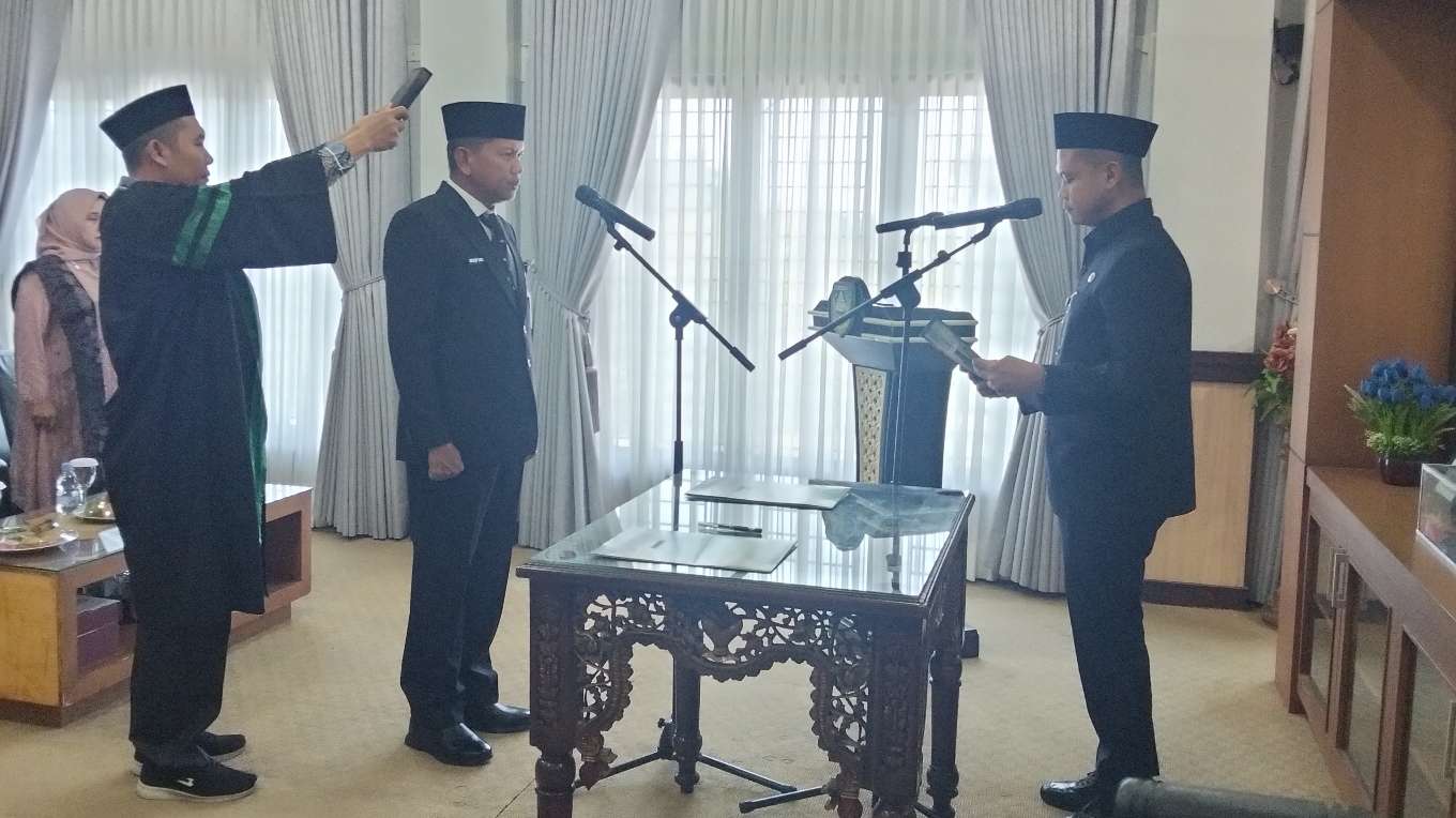 Wakil Bupati Sarolangun Gerry Trisatwika saat melantik dan memimpin pengambilan sumpah/Janji jabatan PJ Sekda Sarolangun yang dijabat oleh Dedy Hendry