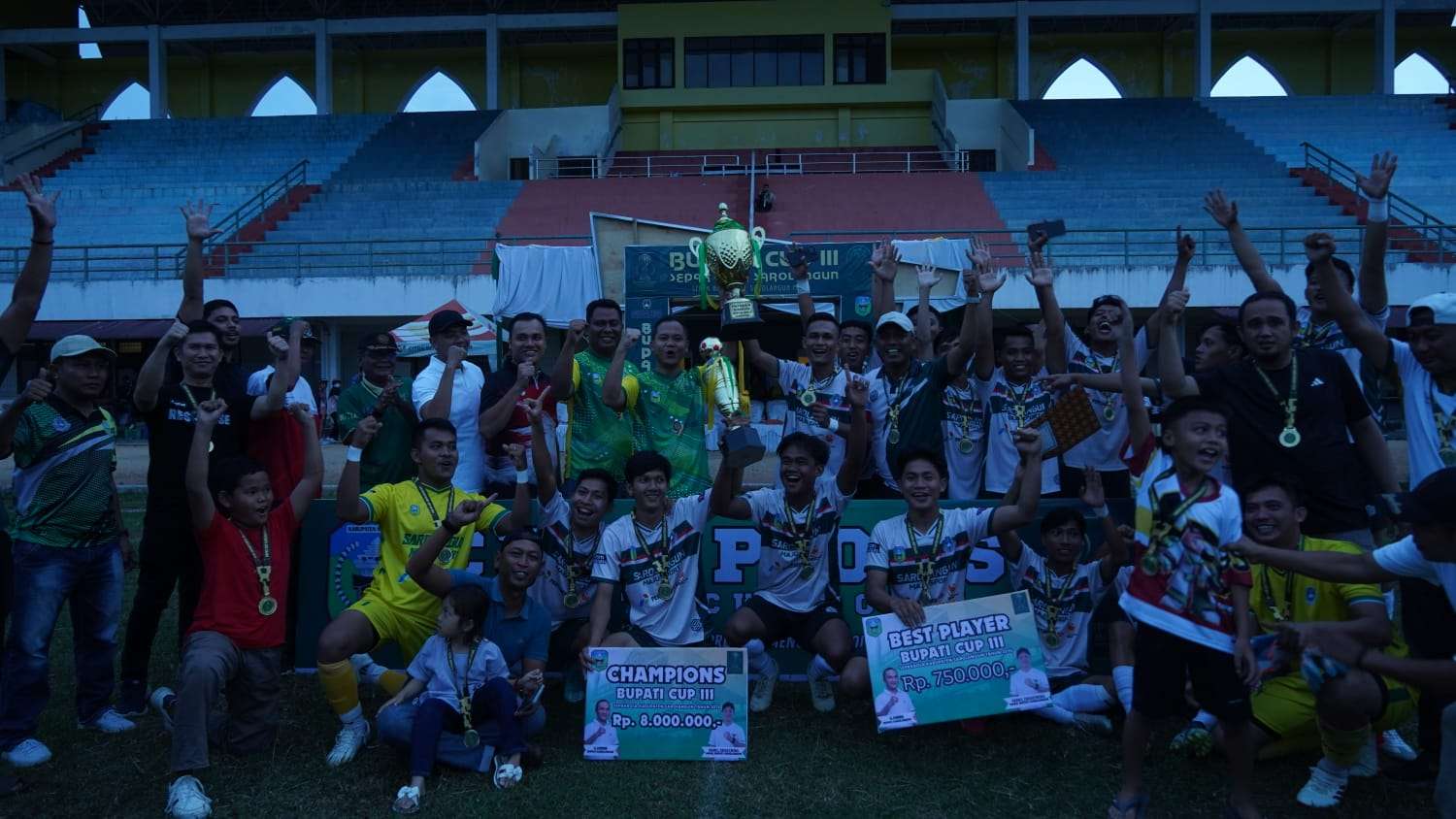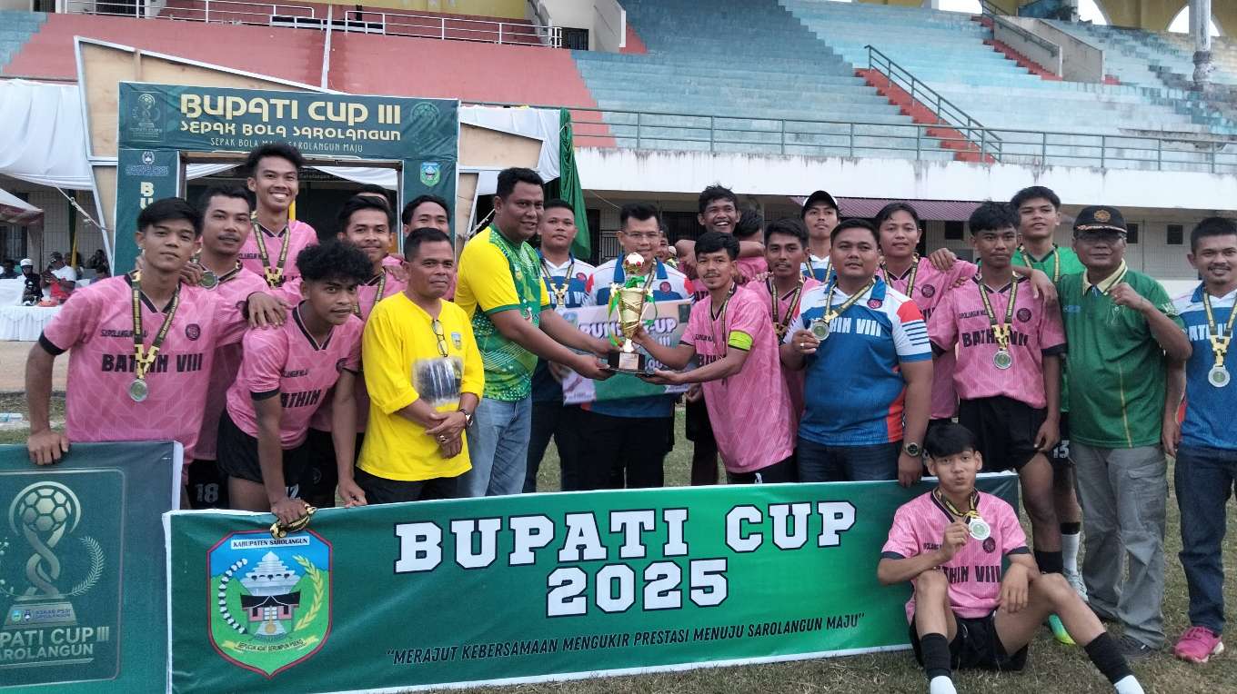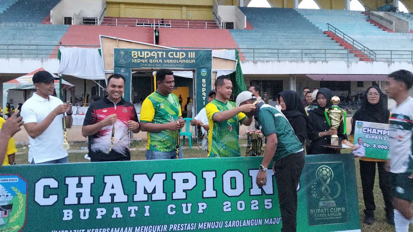 Maka dalam ajang Bupati Cup III Sepakbola Tahun 2025, Tim sepakbola Kecamatan Sarolangun FC keluar sebagai juara sehingga membawa piala bergilir serta medali emas dan hadiah uang tunai sebesar Rp 8 Juta.